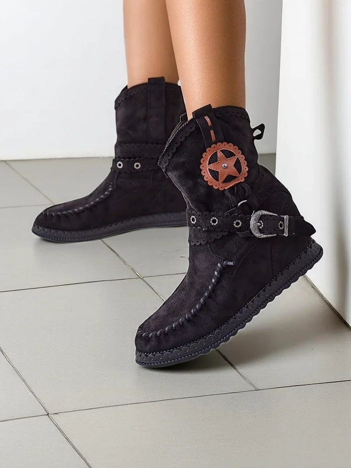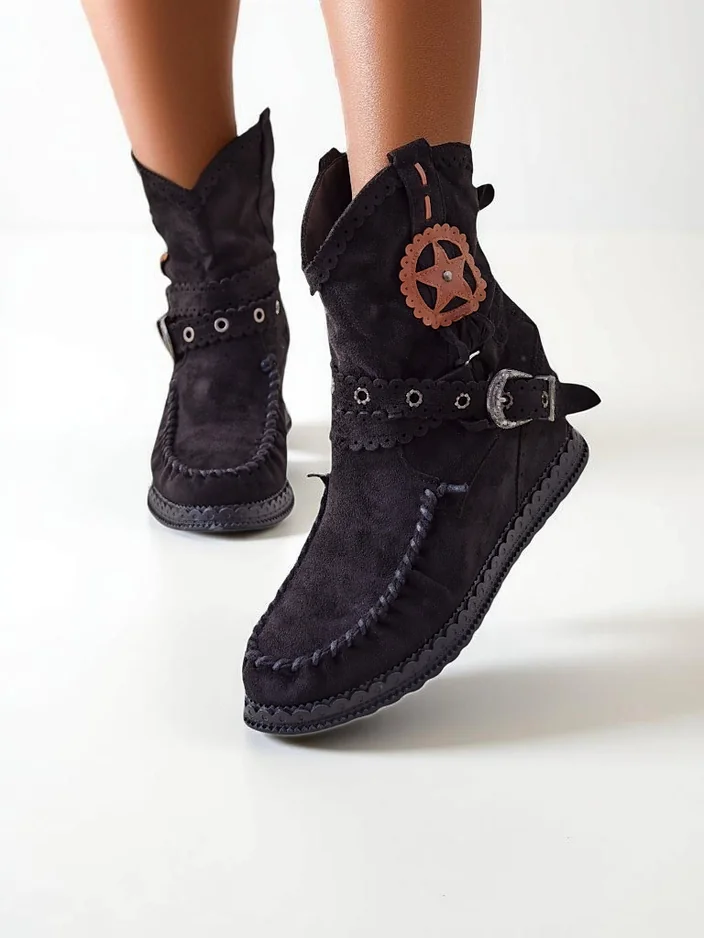 • Incroyables bottines pour femmes sur un petit talon caché, en éco-suède. La semelle intérieure est en éco-cuir. Modèle à enfiler, décoré d'une sangle avec boucle. Parfaites pour les tenues printanières !