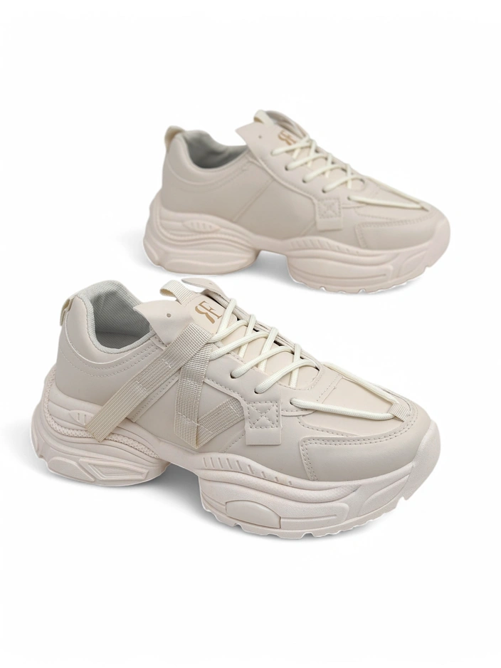 Baskets beiges pour femmes Platina Roma à talons plats en cuir écologique 5 cm