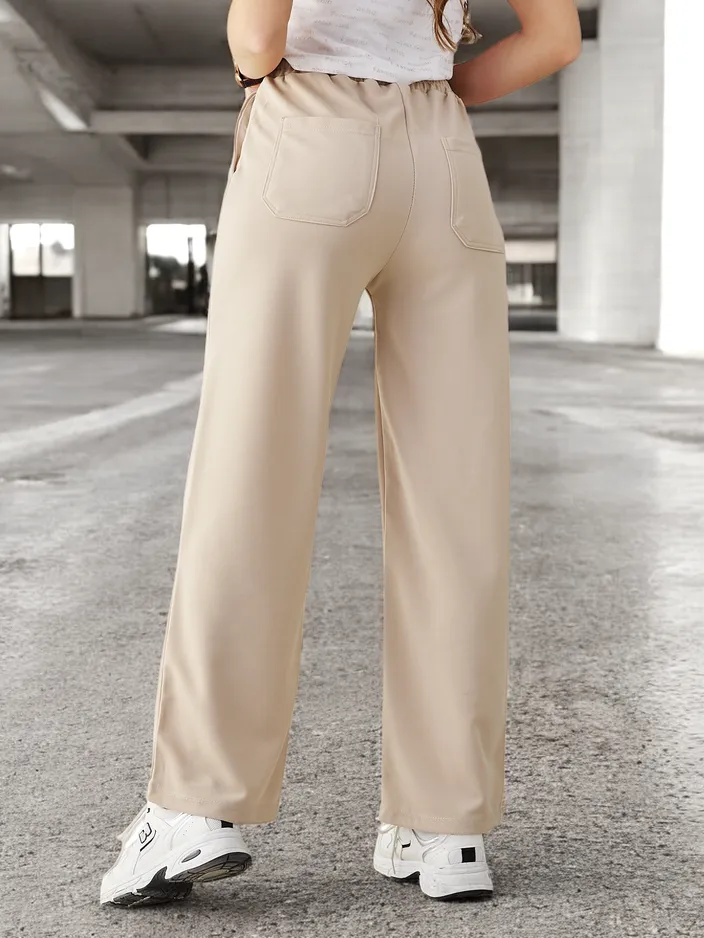 • Pantalons simples incroyables fabriqués en tissu léger, le modèle dispose de 2 poches et d'une taille élastique. De plus, il a des cordons de serrage. Un incontournable dans votre garde-robe ! REMARQUE : Précision des mesures (+/-) 1 cm.