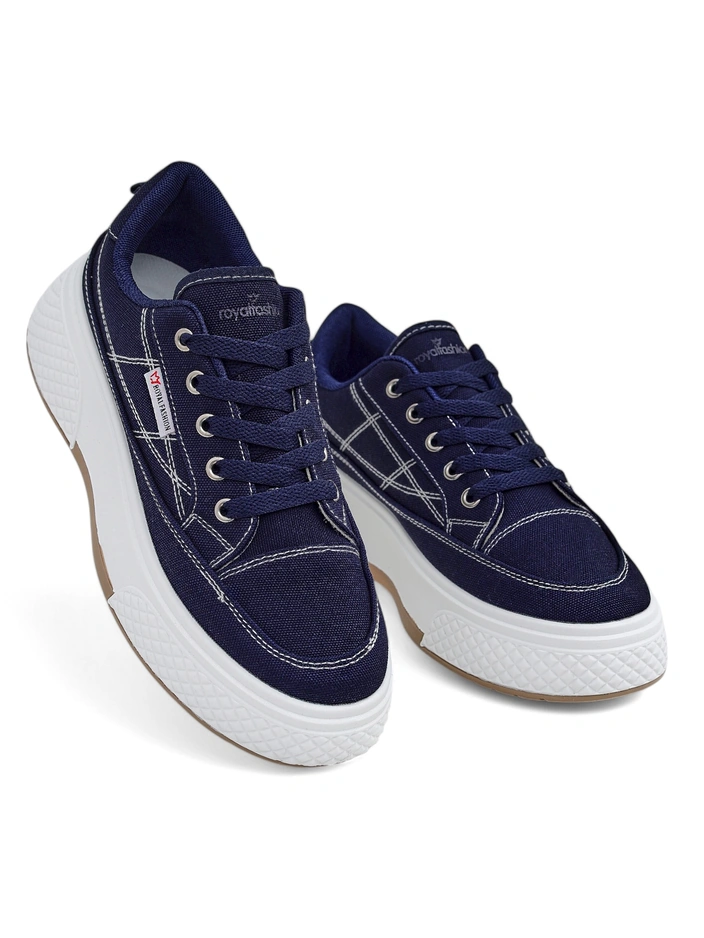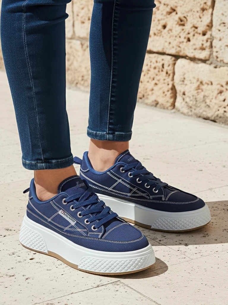 Baskets Callista pour femmes à plateforme, tissu bleu marine, printemps-été