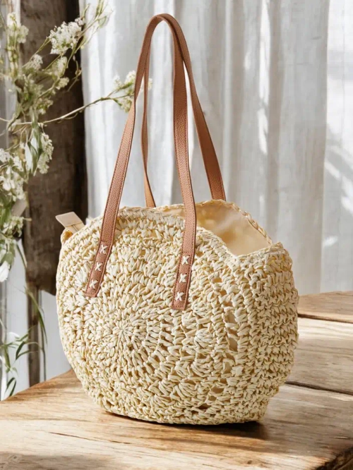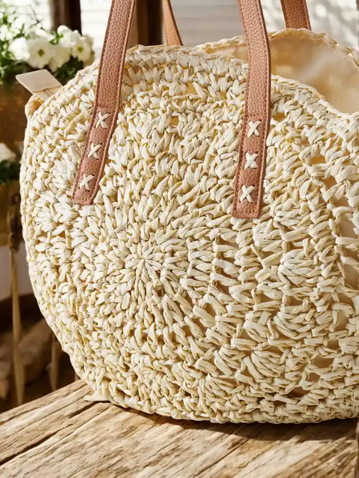 Royalfashion Grand sac à main ovale en paille pour femmes