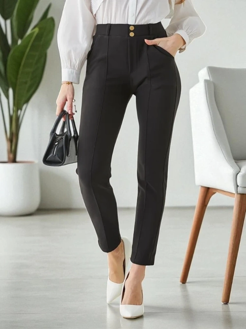 - Treggings intemporels pour femmes en matériau extensible. Le modèle présente une taille haute, une large bande élastique et des boutons décoratifs. Parfait pour le port quotidien !
