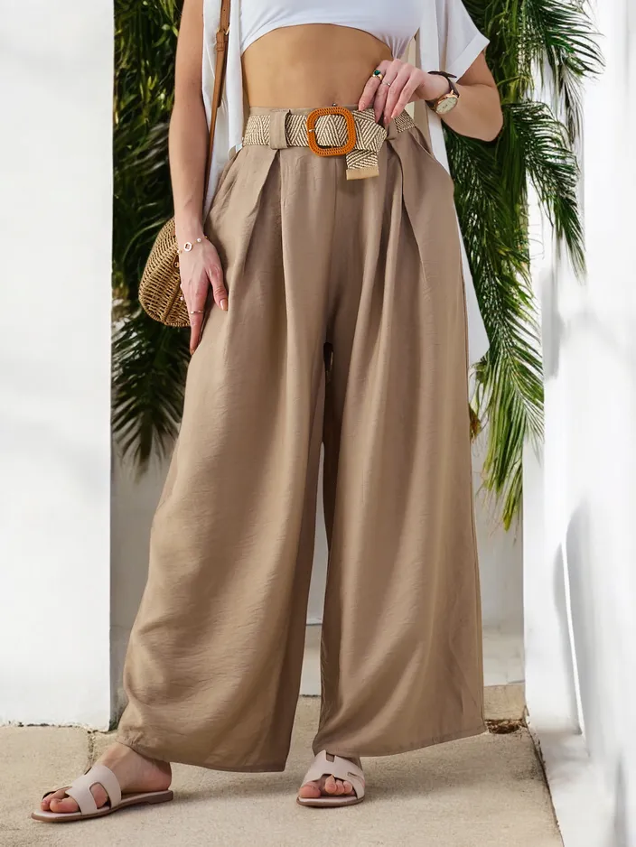 - Pantalons larges incroyables en tissu léger, le modèle comprend 2 poches et une taille élastique. De plus, une ceinture est inclus. Un incontournable dans votre garde-robe ! REMARQUE : Précision de mesure (+/-) 1 cm.