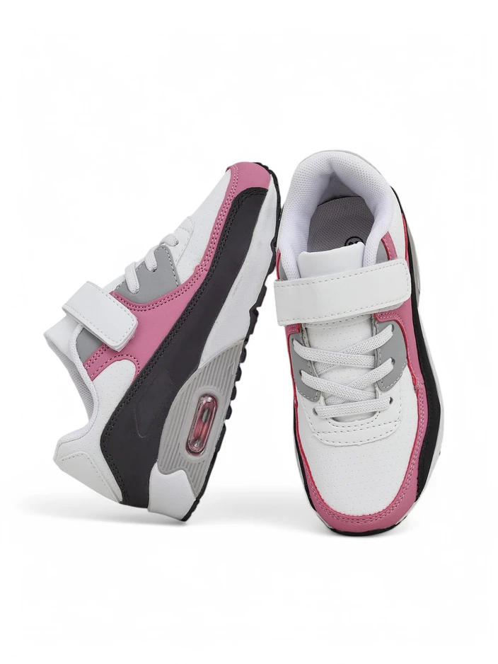 - Baskets pour enfants. Le matériau supérieur est du cuir synthétique et les semelles intérieures sont en tissu. La chaussure est à lacets. Le choix parfait pour un moment actif !