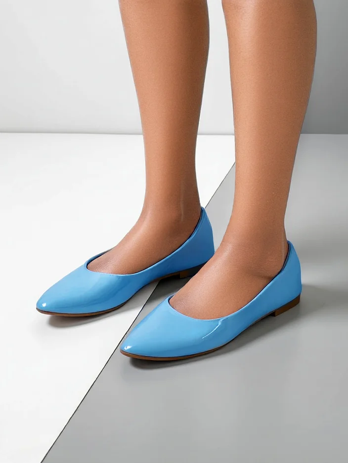 - Ballerines uniques en cuir éco-verni avec un bout pointu. La semelle intérieure en cuir éco-souple offre un confort optimal. Elles s'accorderont parfaitement avec des tenues élégantes et à la mode !