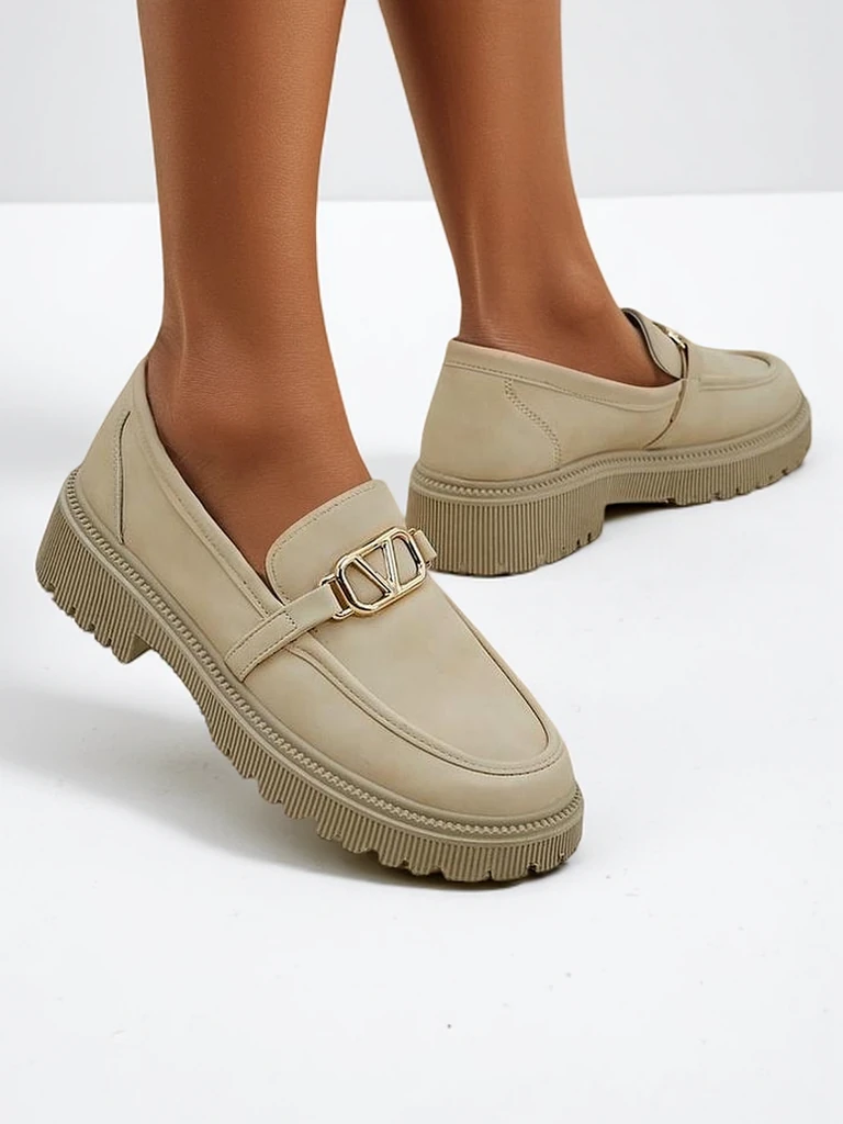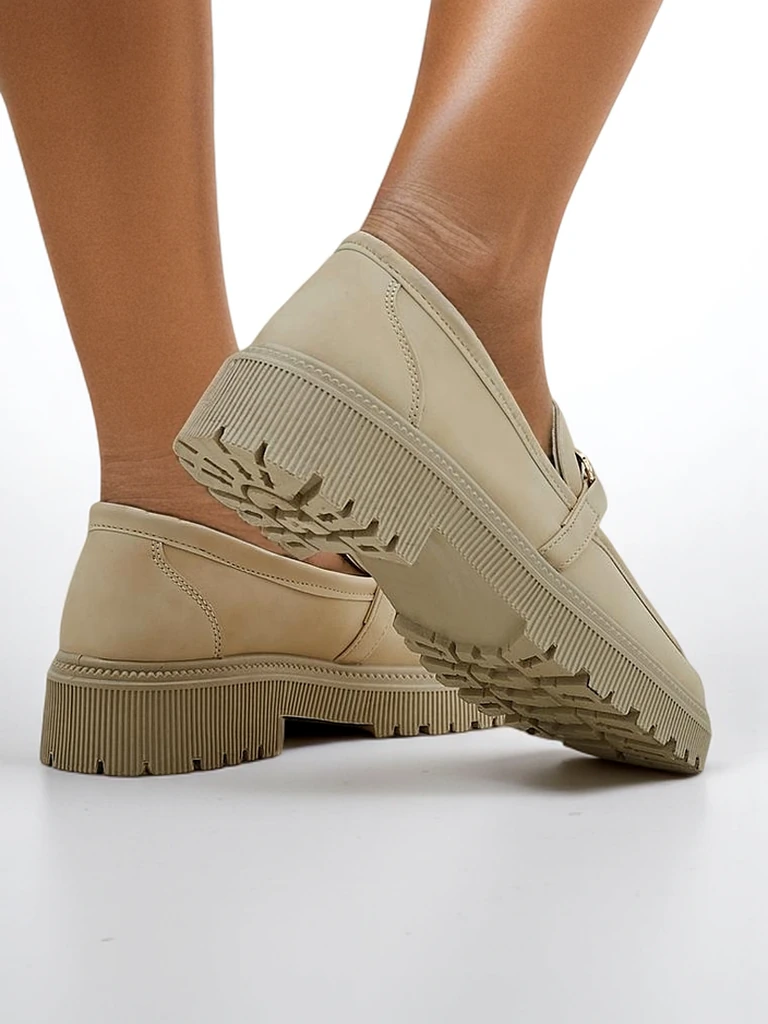 - Mocassins légers pour femmes sur une semelle plate. Le modèle est de style décontracté et est fabriqué en cuir écologique, la semelle intérieure est en tissu. Parfait pour les tenues de printemps !