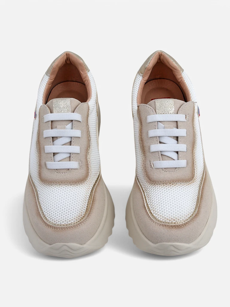 - Baskets féminines à la mode avec une semelle plus épaisse, en éco-cuir et en éco-suède. À l'intérieur, il y a une semelle intérieure en éco-cuir douce. Les chaussures sont lacées. Elles seront un excellent accessoire pour des tenues quotidiennes.