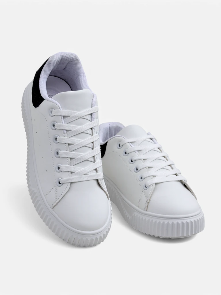 Baskets compensées Callista pour femmes en cuir écologique blanc et noir