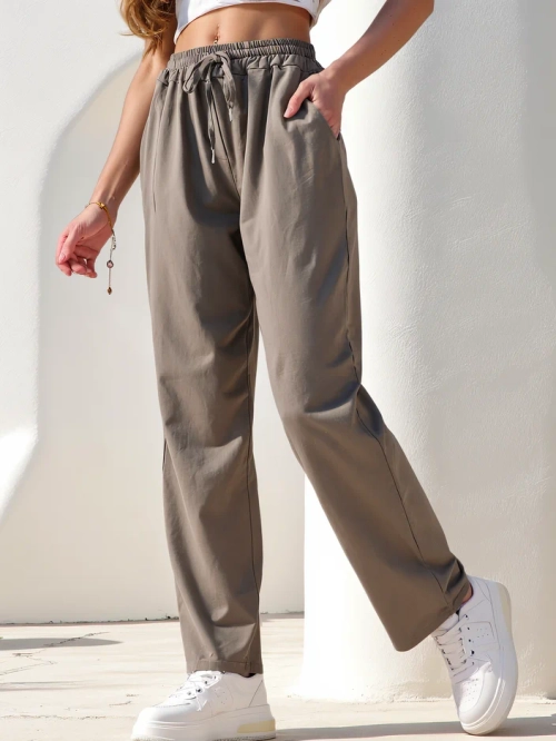 - Pantalons larges en tissu léger, le modèle dispose d'une taille élastique et de deux poches. Confortable et douillet ! REMARQUE : Précision des mesures (+/-) 1 cm.