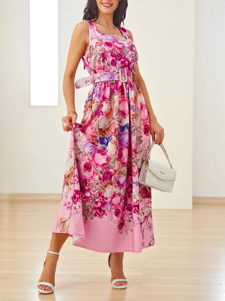 Robe midi femme Royalfashion avec bretelles, dotée d'une ceinture aux divers motifs floraux