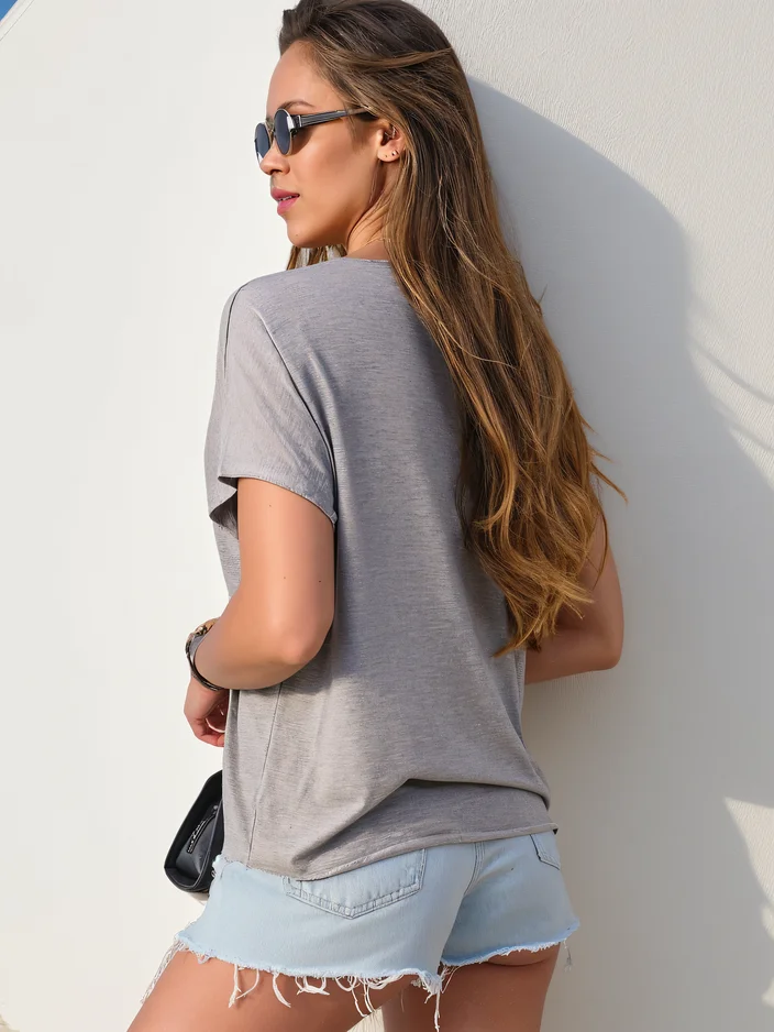 - Blouse en viscose pour femmes à manches courtes avec finition pailletée – légère, brillante et pleine de subtils éclats, parfaite pour les sorties en soirée.