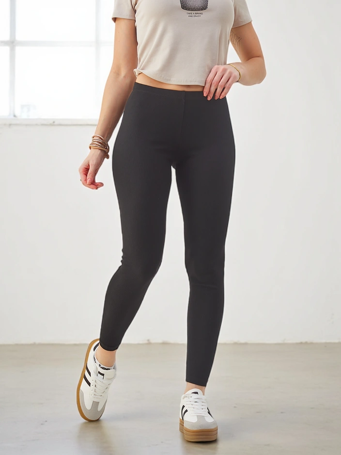 • Leggings pour femmes en tissu côtelé léger. Le modèle présente une taille large et extensible. Parfait pour les activités actives ! REMARQUE : Précision de la mesure (+/-) 1 cm.
