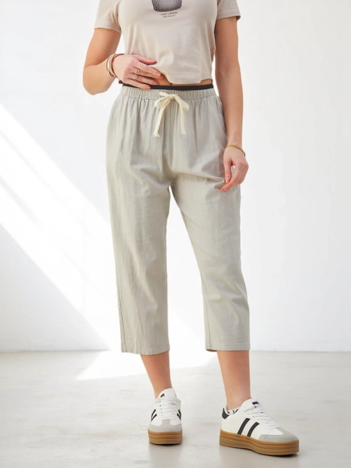Pantalons larges en coton pour femmes Royalfashion avec lien