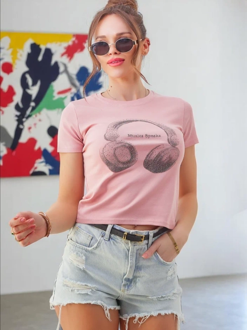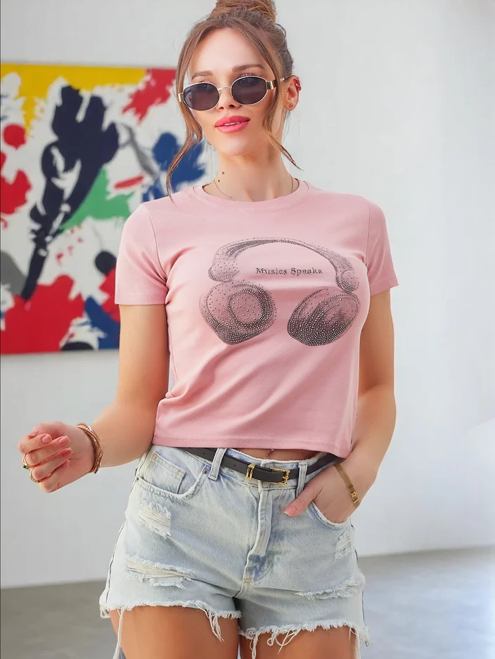 T-shirt en coton Royalfashion pour femmes avec impression Music Speaking