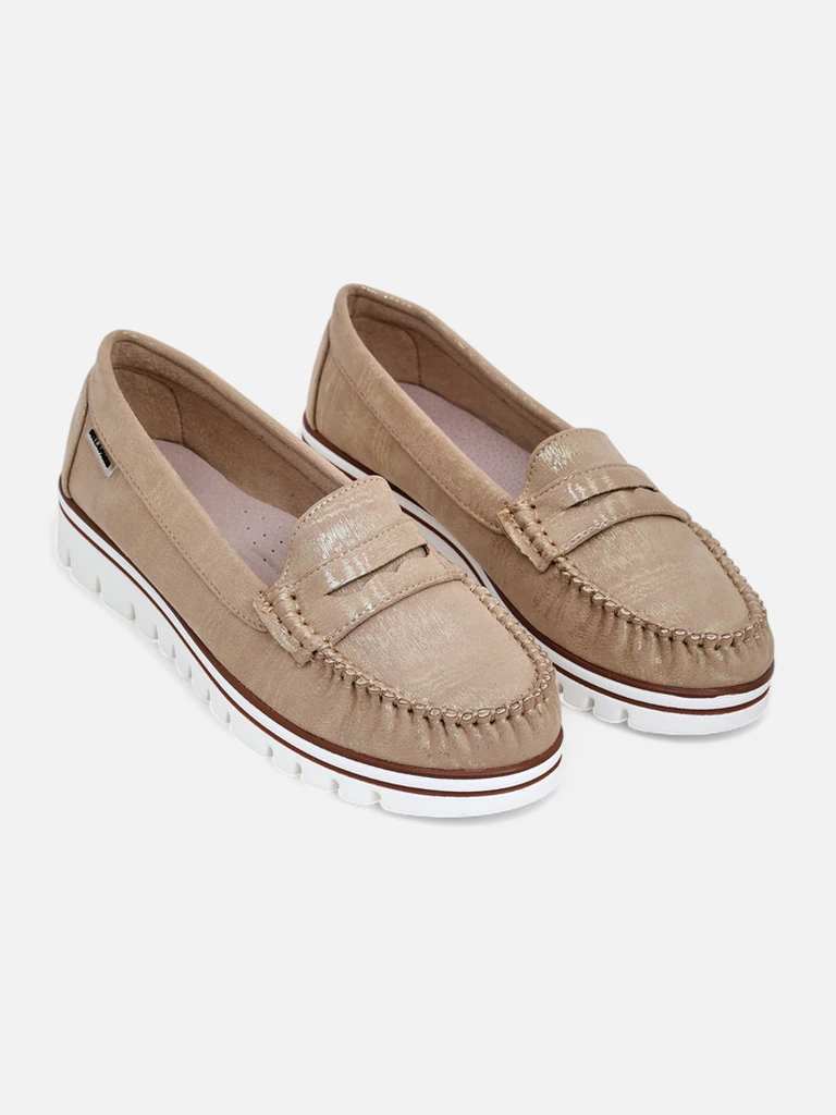 - Lekkie, damskie mokasyny na płaskiej podeszwie. Model w stylu casual i jest wykonany ze skóry ekologicznej zamszowej, wkładka to skóra naturalna. Idealne do wiosennych outfitów!.