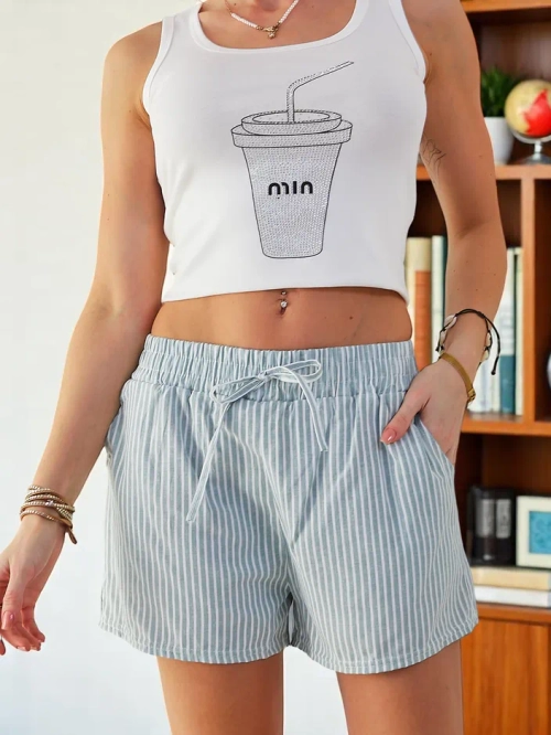 Royalfashion Shorts pour femmes avec une taille élastique et des cordons de serrage dans un motif rayé