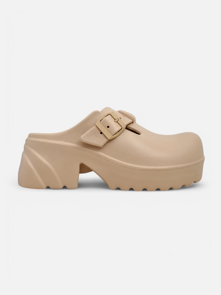 - Mettez en valeur votre style d'été et profitez du confort avec ces sandales à talons. Le modèle est fabriqué en plastique caoutchouté. Décoré avec un orteil rond. La plateforme est ornée de boucles. C'est le choix parfait pour les journées d'été !