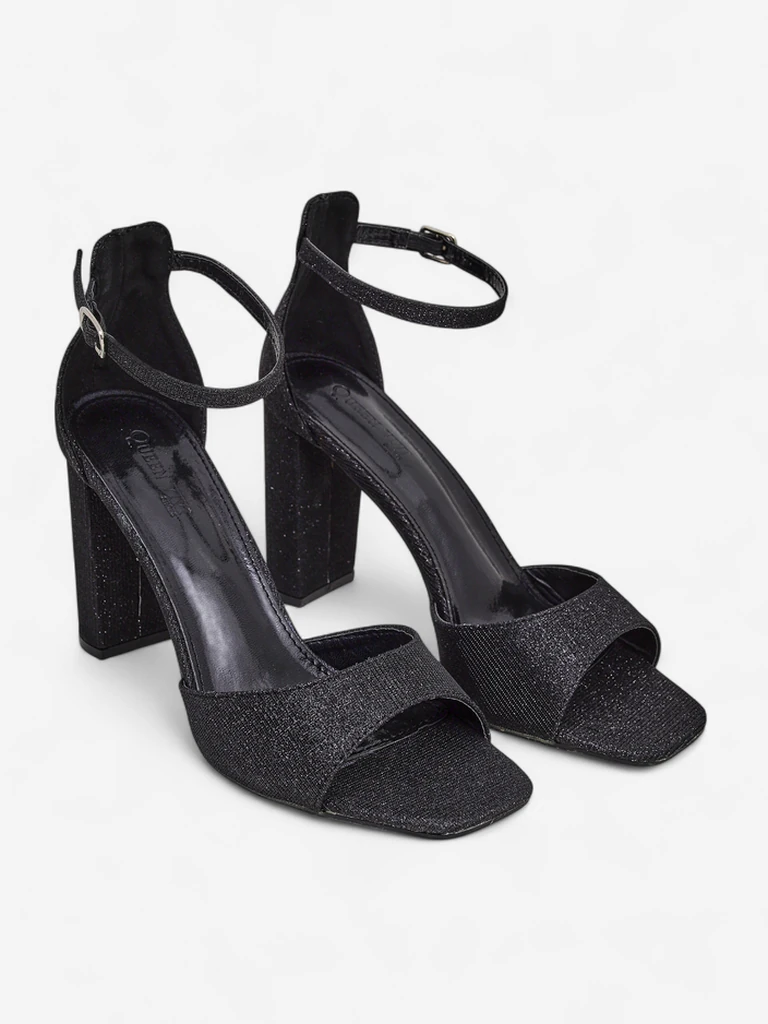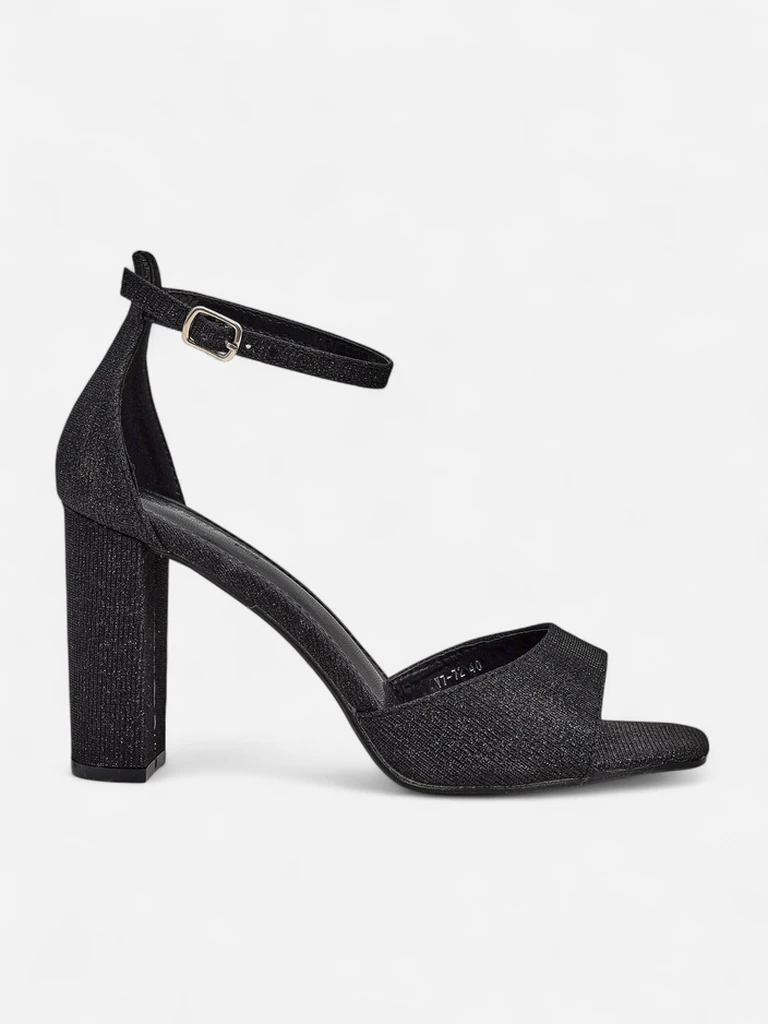 - Sandales à talon bloc pour femmes - l'idée parfaite pour les chaudes journées d'été. Le modèle est en tissu avec des paillettes et possède une semelle intérieure en éco-cuir. Les chaussures sont dotées d'une fermeture à boucle. Une combinaison de style et