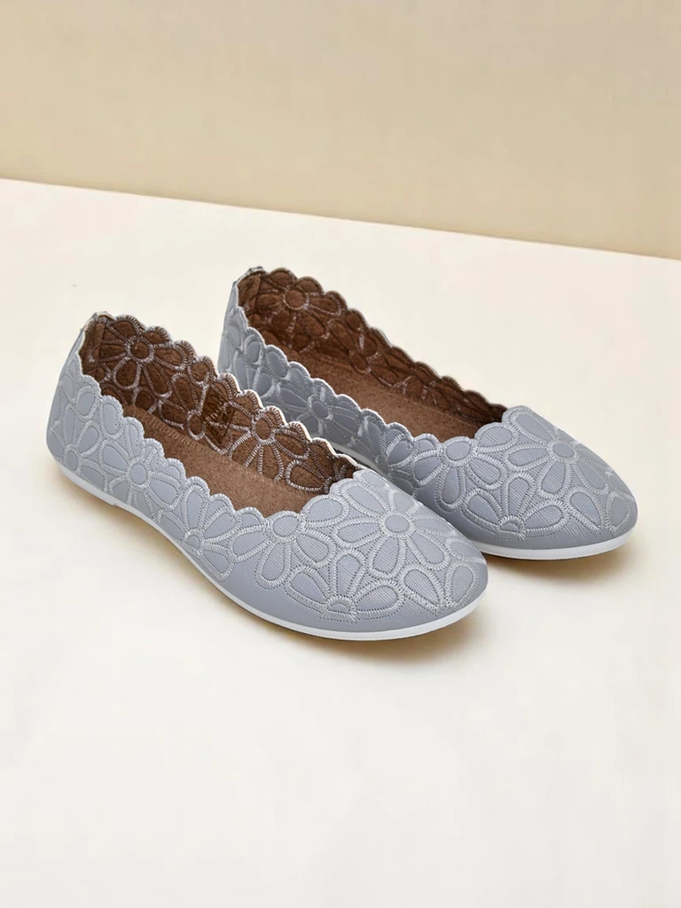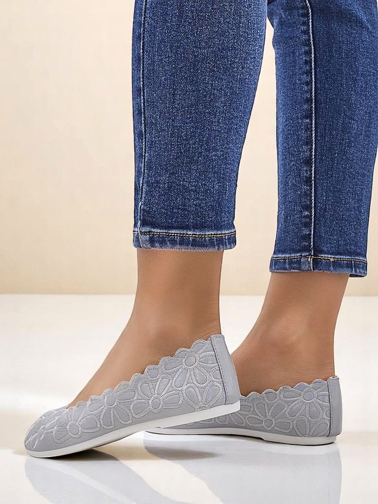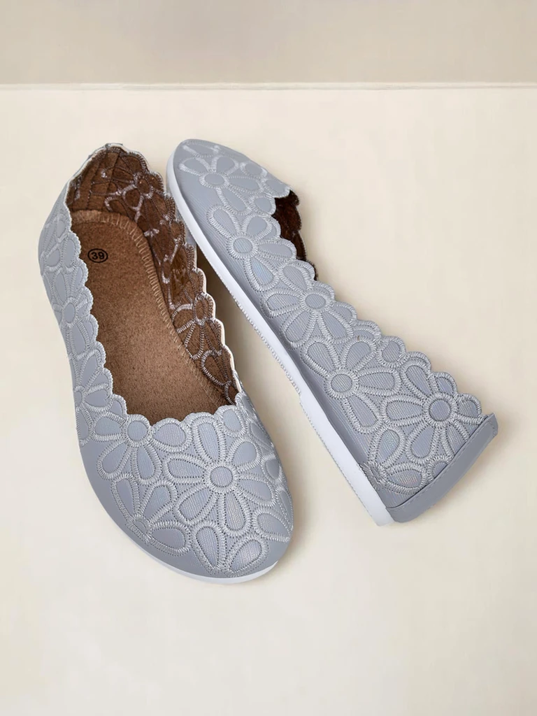 - Ballerines exceptionnelles en tissu à bout rond. La tige est ornée d’une délicate broderie florale. La semelle intérieure en tissu doux offre un confort optimal. Elles sont parfaites pour des tenues élégantes et à la mode !