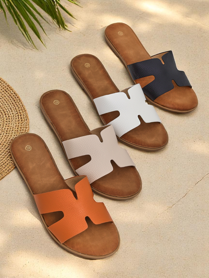 Les claquettes Aurelia sont l'incarnation de l'élégance et du confort estival. Confectionnées en cuir écologique haut de gamme, elles garantissent un confort optimal tout au long de la journée. Leur surface délicatement texturée leur confère une sophistication subtile, tandis que des détails finement découpés leur apportent une touche de modernité. **Matière et technologie :** Les claquettes Aurelia sont fabriquées en cuir écologique durable et agréable au toucher. Ce matériau est résistant à l'usure et facile d'entretien. La semelle est en matière légère et flexible, amortissant les chocs et assurant une stabilité à chaque pas. **Avantages et sensations :** Les claquettes Aurelia sont le choix idéal pour les journées chaudes. Légères et aérées, elles offrent confort et liberté aux pieds. La semelle intérieure souple s'adapte à la forme du pied, réduisant les risques d'irritations. Le motif géométrique leur ajoute une touche d'originalité, leur permettant de s'harmoniser parfaitement avec toutes les tenues estivales. **Idées de tenues :** 1. **Look décontracté :** Associez les claquettes Aurelia à un jean, un t-shirt blanc et une veste en cuir. Ajoutez un sac à dos ou un sac bandoulière pour un look décontracté et tendance. 2. **Robe d'été :** Les claquettes Aurelia seront parfaites avec une robe maxi fluide à fleurs ou dans des tons pastel. Complétez la tenue avec un chapeau et des lunettes de soleil pour un style romantique et féminin. 3. **Style urbain :** Associez les claquettes Aurelia à un pantalon en lin, une chemise à rayures et une veste. Ajoutez un sac élégant et des bijoux pour une allure chic et moderne. **Entretien :** Pour préserver l'aspect impeccable des claquettes Aurelia, il est conseillé de les nettoyer régulièrement avec un chiffon humide. Évitez de les immerger dans l'eau et de les laisser sécher au soleil. Rangez-les dans un endroit sec et aéré. **Tendances :** Les claquettes Aurelia s'inscrivent dans les dernières tendances de la mode estivale. Le design minimaliste, les motifs géométriques et les couleurs naturelles sont des éléments clés de cette saison. En optant pour les claquettes Aurelia, vous êtes assurée d'afficher un look tendance et stylé.