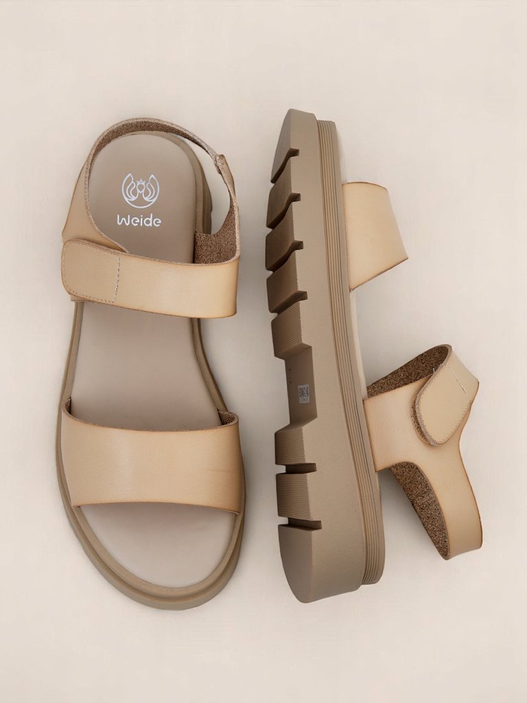 - Sandales plates pour femmes - parfaites pour les chaudes journées d'été. Bride en cuir écologique agréable. Fermeture velcro. Idéales pour un usage quotidien !