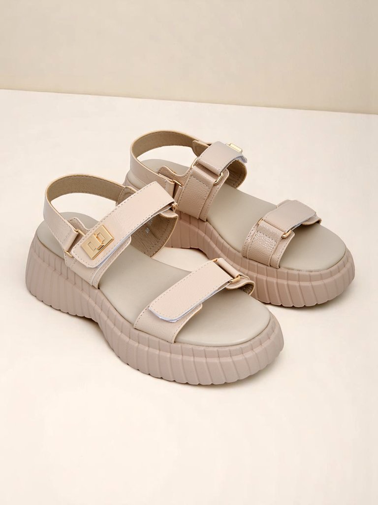 • Sandales plates pour femmes - parfaites pour les chaudes journées d'été. Les lanières sont en cuir écologique agréable au toucher. Les chaussures se ferment avec du velcro. Idéales pour un usage quotidien !