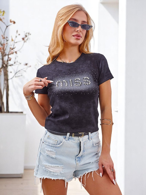T-shirt en coton pour femme Royalfashion avec strass MISS