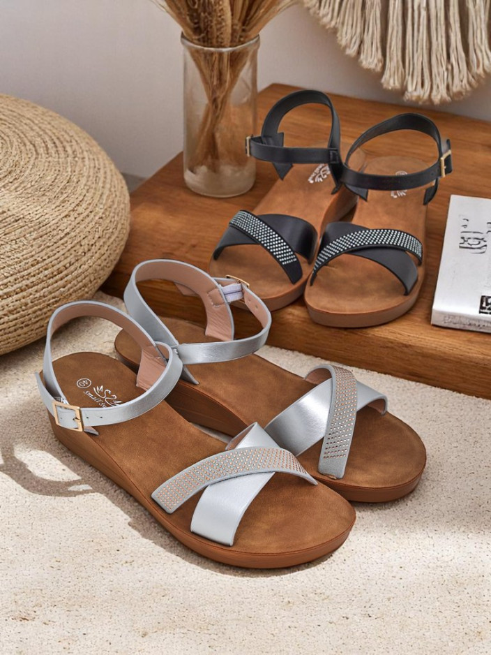 • Magnifiques sandales compensées pour femmes, ornées de strass délicats, qui subliment l'éclat estival. Un savant mélange de confort et de luxe - parfaites pour toutes les grandes occasions !