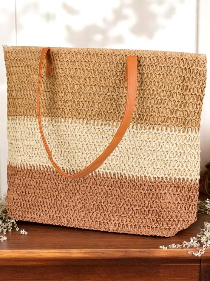 Royalfashion Grand sac en paille pour femme, larges rayures audacieuses