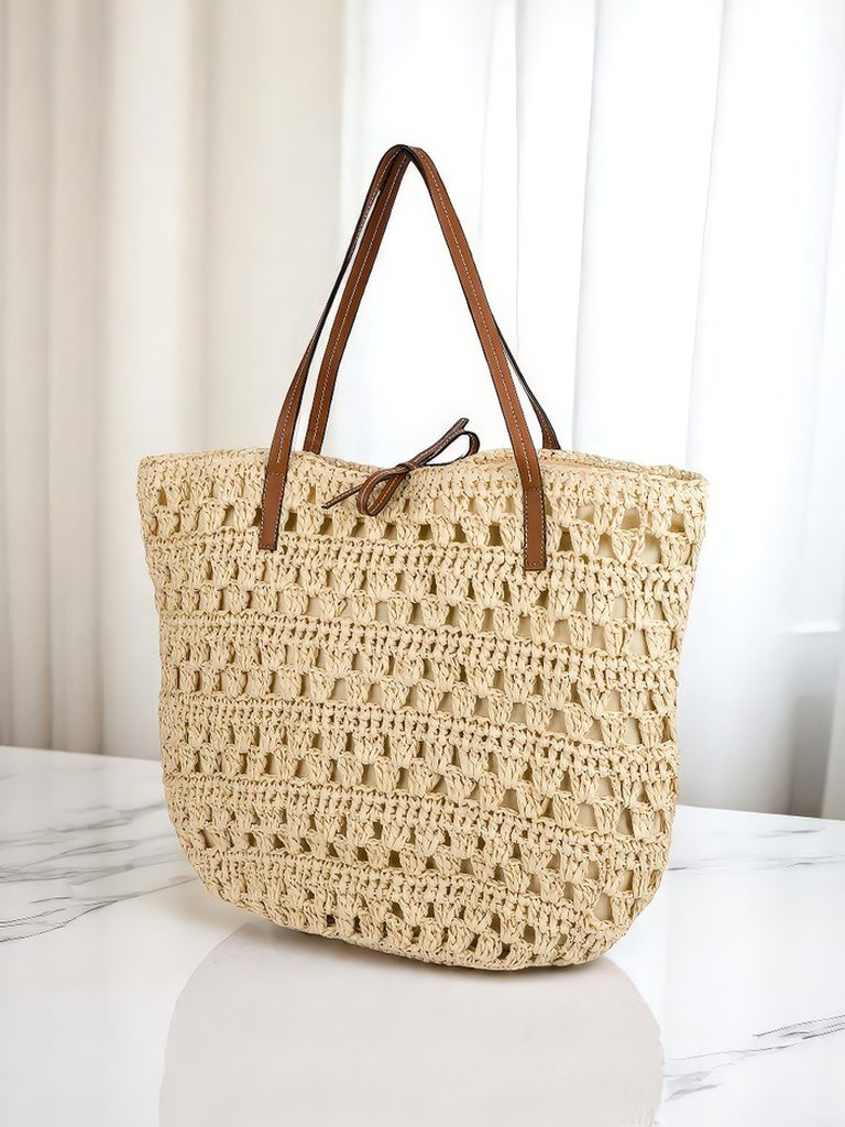 - Grand sac fourre-tout tressé pour femme en paille. 1 compartiment, poche intérieure zippée. Léger, spacieux et élégant - parfait pour l'été, la plage et les sorties quotidiennes !
