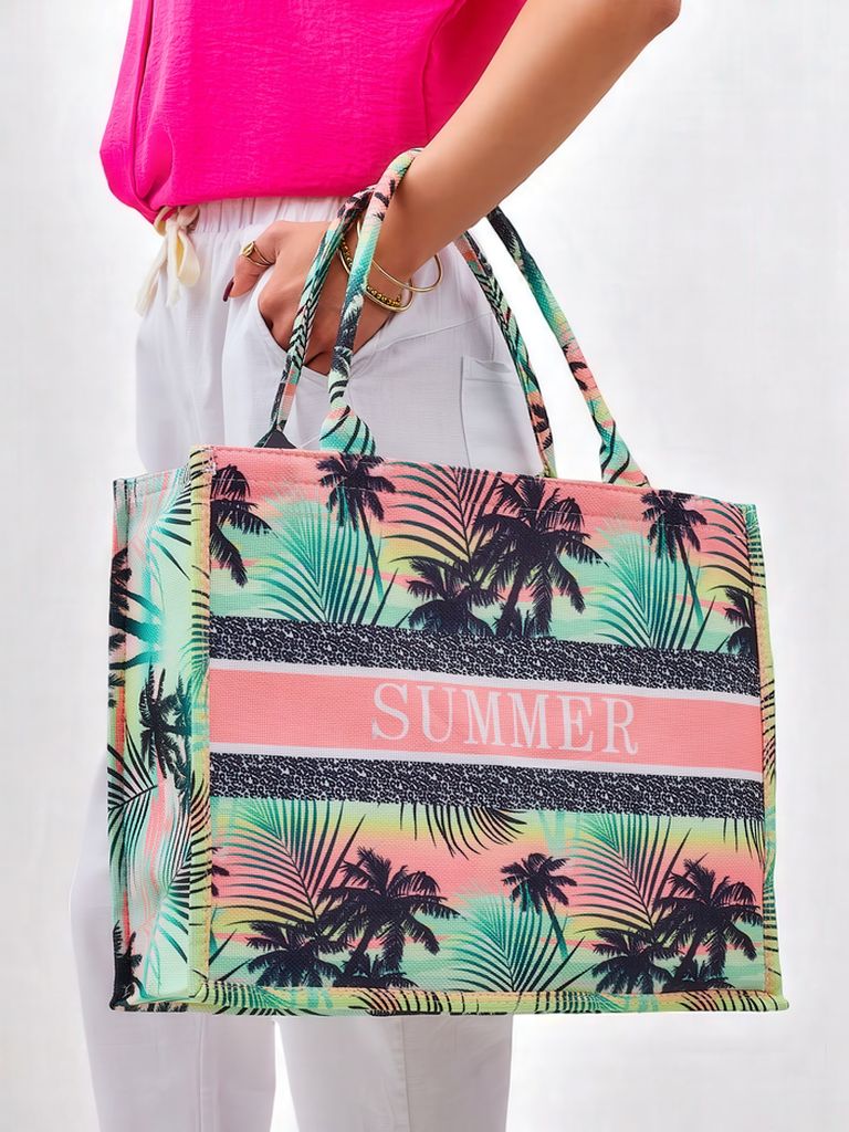 - Grand sac en tissu pour femme avec un motif coloré et l'inscription "SUMMER". Un compartiment, léger et spacieux – parfait pour la plage, les vacances et les tenues estivales !