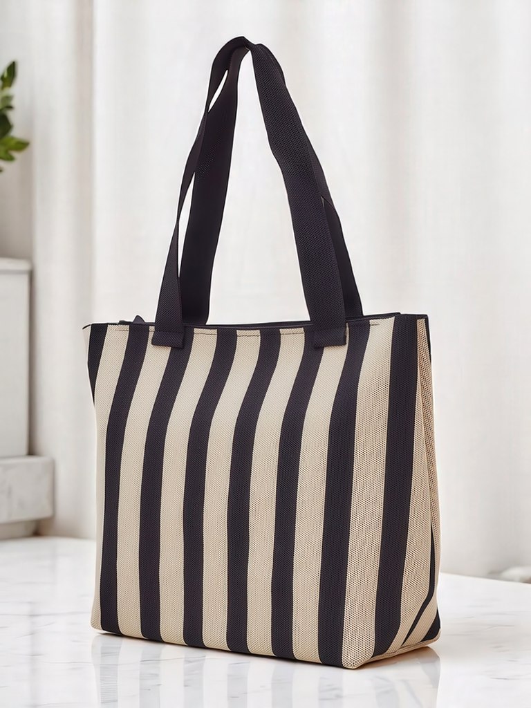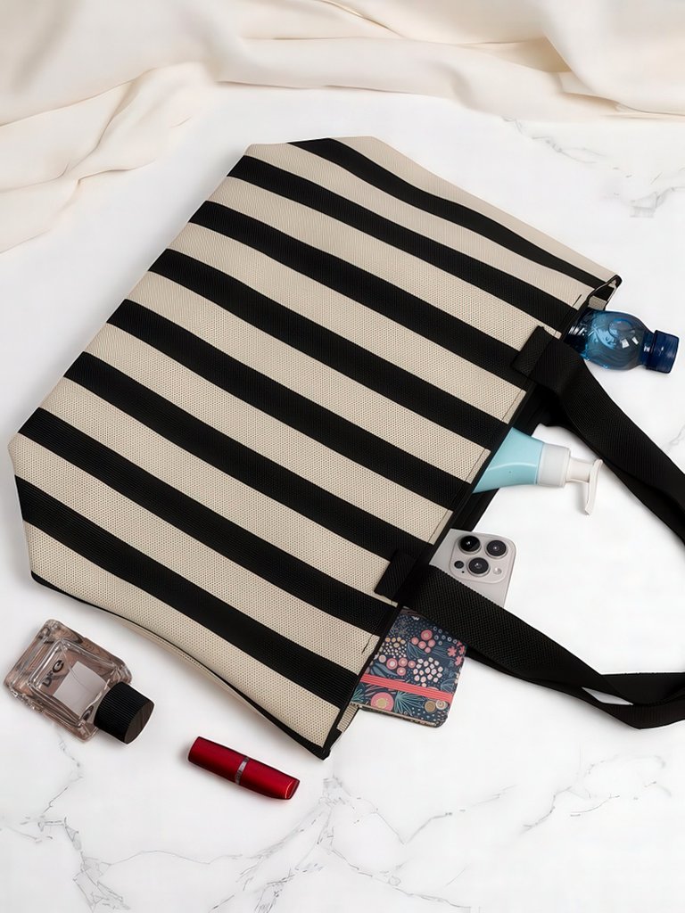 - Grand sac à main en tissu rayé classique pour femme. 1 compartiment, fermeture éclair. Léger, spacieux et élégant - parfait pour le shopping et les sorties quotidiennes !
