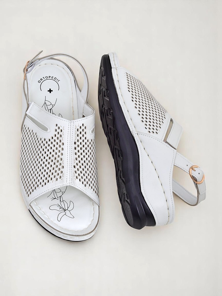 Les sandales Calcebianca sont une combinaison de style italien, de tradition antique et de confort moderne. Fabriquées en cuir pleine fleur naturel de haute qualité, elles garantissent non seulement un aspect esthétique, mais aussi une durabilité à long terme. Les motifs découpés au laser sur la tige assurent une excellente ventilation et un effet visuel subtil et tendance, qui s'inscrit dans les dernières tendances des chaussures d'été au caractère légèrement rétro. La semelle intérieure en cuir avec imprimé floral et la fermeture à boucle délicate et réglable assurent un ajustement aux besoins individuels, tout en protégeant le pied et en renforçant son bon positionnement.