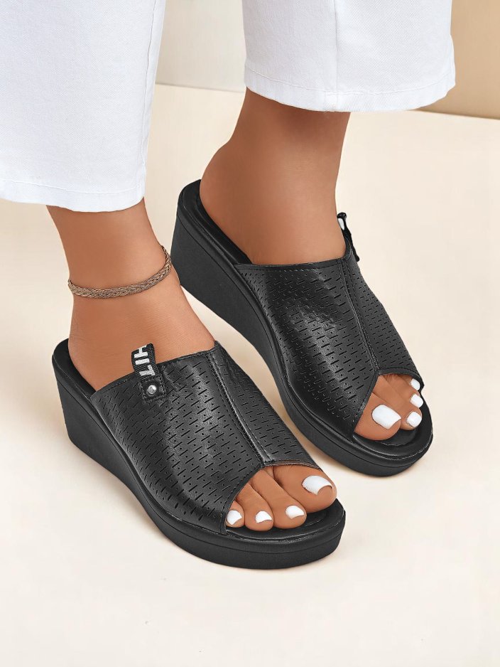 - Sandales compensées pour femmes en cuir écologique, ajourées et légères. Une combinaison élégante de confort et d'élégance pour l'été. Idéales pour le quotidien et les sorties estivales, elles mettront en valeur n'importe quelle tenue.
