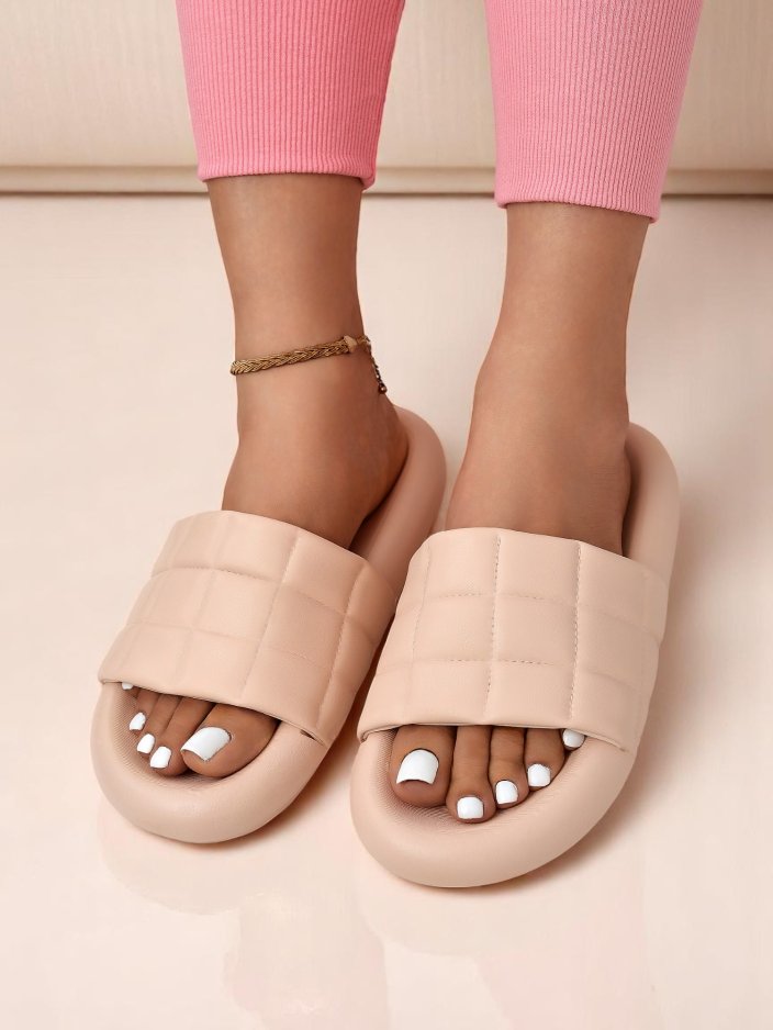 - Élégantes claquettes pour femmes en cuir écologique avec tige matelassée et semelle en caoutchouc. Confortables, légères et tendance, parfaites pour l'été, les promenades et les tenues décontractées de tous les jours.