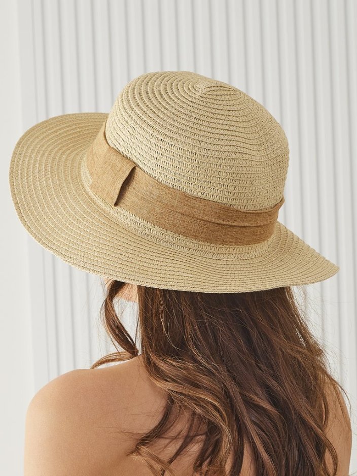 - Chapeau de paille pour femme à large bord et joli ruban en tissu. Léger, élégant et respirant—parfait pour l'été, les promenades et les tenues élégantes !