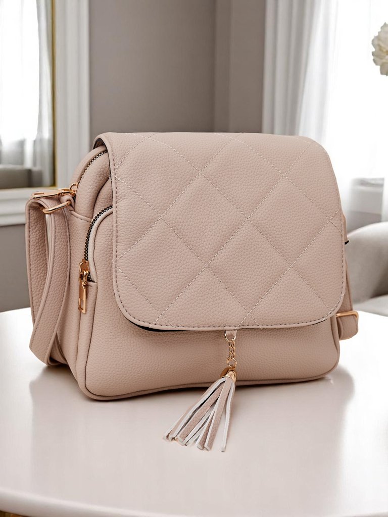 - Petit sac à main en cuir écologique avec un élégant motif embossé. Il dispose d’un compartiment, de trois poches et d’une bandoulière réglable. Élégant et pratique – parfait pour un usage quotidien et les sorties.