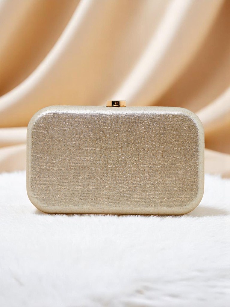 - Pochette en cuir écologique, recouverte d’un tissu orné d’un fil scintillant et de subtils motifs en relief. Fermeture par bouton-pression, avec une bandoulière chaîne amovible—alliance d’élégance et de brillance.