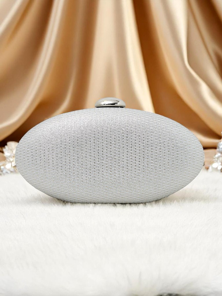 • Sac en forme d’enveloppe, en forme d’ellipse, fabriqué en cuir écologique, recouvert de tissu avec un fil scintillant et gaufrage. Fermeture à bouton-pression, avec une chaîne amovible – style et éclat !
