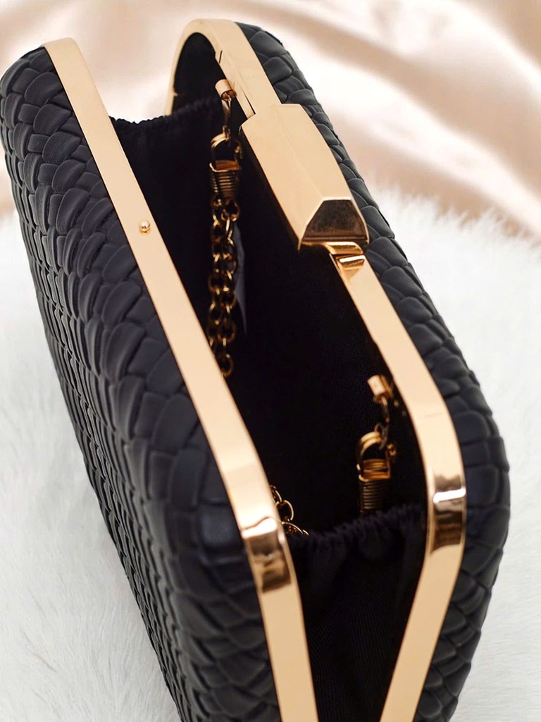 - Pochette élégante de forme enveloppe en éco-cuir embossé. Fermeture à bouton-pression, avec une bandoulière amovible — idéale à porter à la main ou sur l'épaule. Élégance et chic urbain sous une forme compacte !