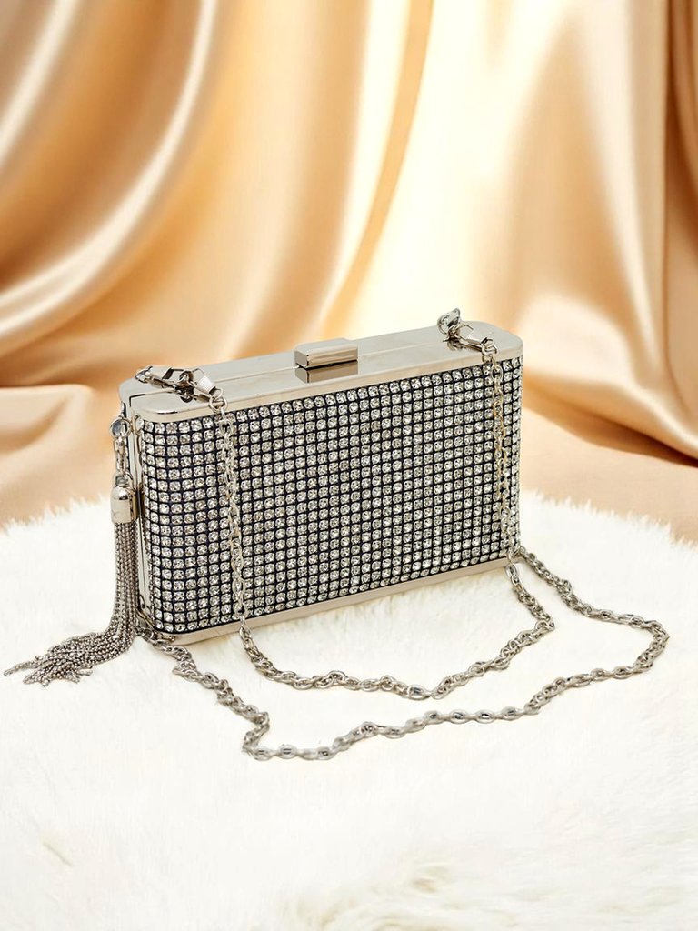 - Pochette de soirée ornée de strass, fermeture à pression. Petite, élégante, avec bandoulière amovible—à porter à la main ou à l'épaule. Apporte une touche d’éclat à toutes vos tenues !