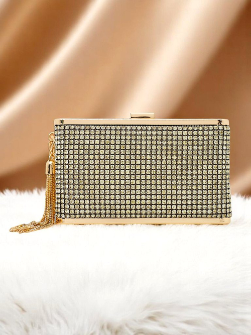 - Pochette de soirée avec strass, fermée par un bouton pression. Petite, élégante, avec des bandoulières amovibles — à porter à la main ou à l'épaule. Apporte une touche d'éclat à toutes les tenues !
