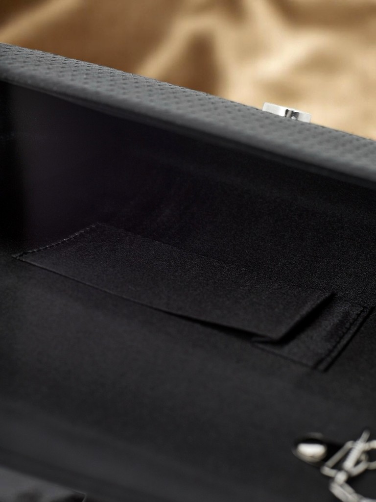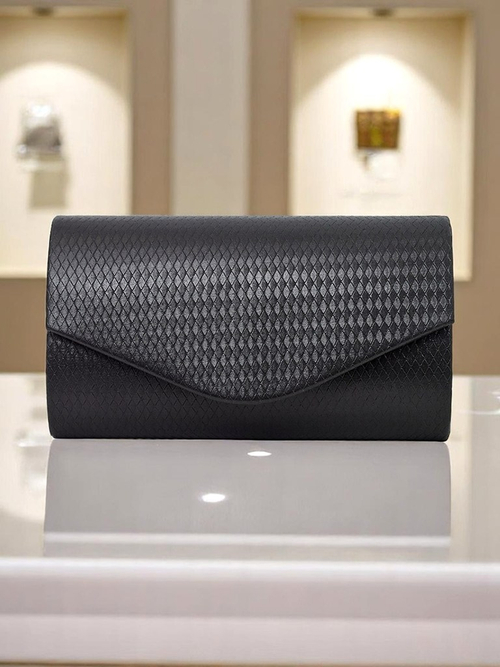 - Pochette enveloppe en cuir écologique, recouverte de tissu avec un fil scintillant et un gaufrage subtil. Fermeture magnétique, avec une bandoulière amovible – l’élégance dans une version brillante.