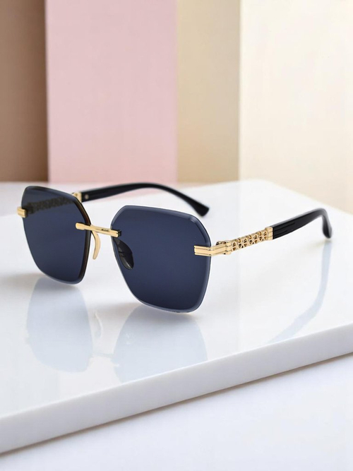 - Lunettes de soleil élégantes avec des verres carrés et sans monture. Disponibles en différentes couleurs. Les détails dorés et les branches légères offrent un look tendance et un port confortable.