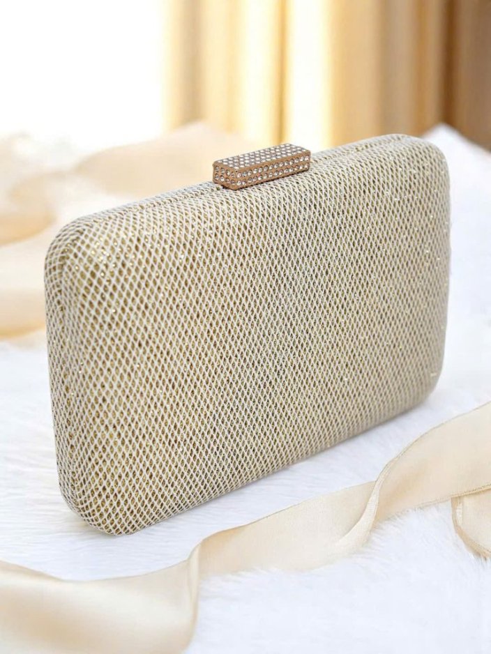 - Sac à main enveloppe en cuir écologique, recouvert d'un tissu avec un fil brillant et un gaufrage subtil. Fermeture à bouton-pression, avec une chaîne amovible — élégance et éclat réunis.