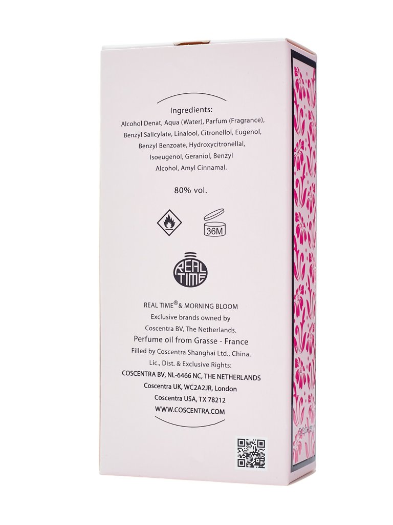 - Un parfum délicat et floral avec du jasmin en note de tête, un cœur de fleur de pêcher, et une base sensuelle de liane de Rangoon. Une composition subtile pleine de fraîcheur et de légèreté.