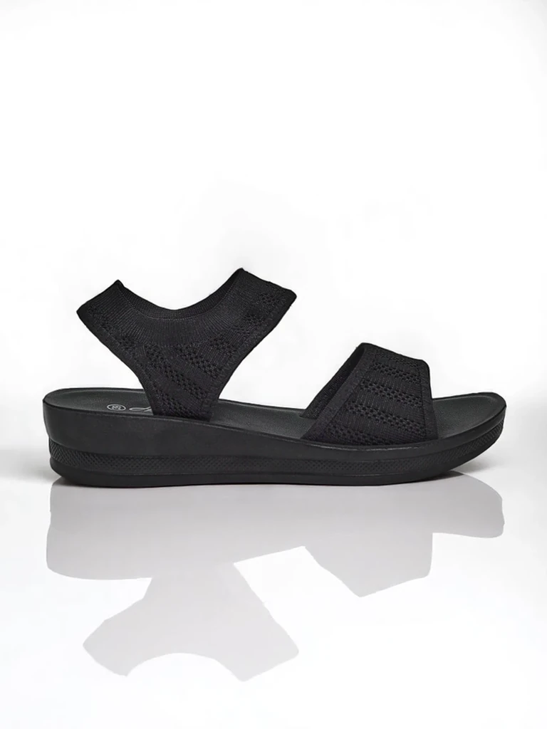 • Sandales pour femmes à semelle épaisse, à enfiler, avec une semelle intérieure confortable en cuir écologique. Les brides élastiques en tissu s'adaptent au pied, et l'élastique à la cheville assure stabilité et confort. Idéales pour l'été – légères, prati