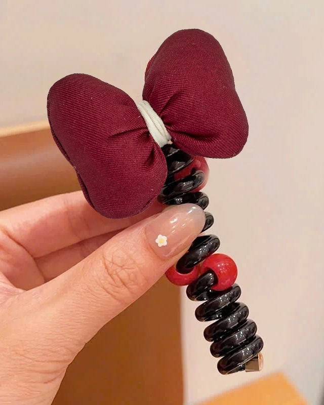- Élastique à cheveux en forme de ressort avec un joli nœud. Offre une tenue forte mais douce pour les cheveux sans les abîmer. Un accessoire élégant et pratique qui ajoutera une touche de charme féminin à toute coiffure.