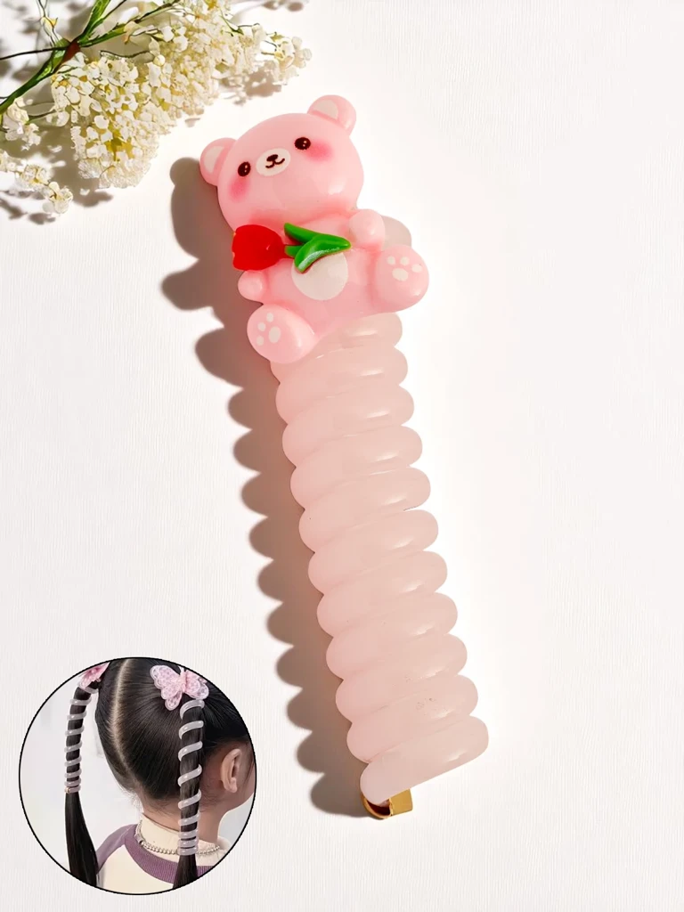 - Élastique à cheveux Teddy Twist en forme de ressort, orné d’un adorable ourson. Il maintient délicatement les cheveux sans les abîmer et apporte une touche douce et enfantine à toutes les coiffures. Parfait pour un usage quotidien et pour jouer.