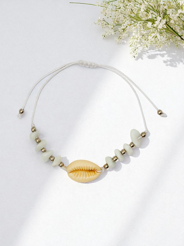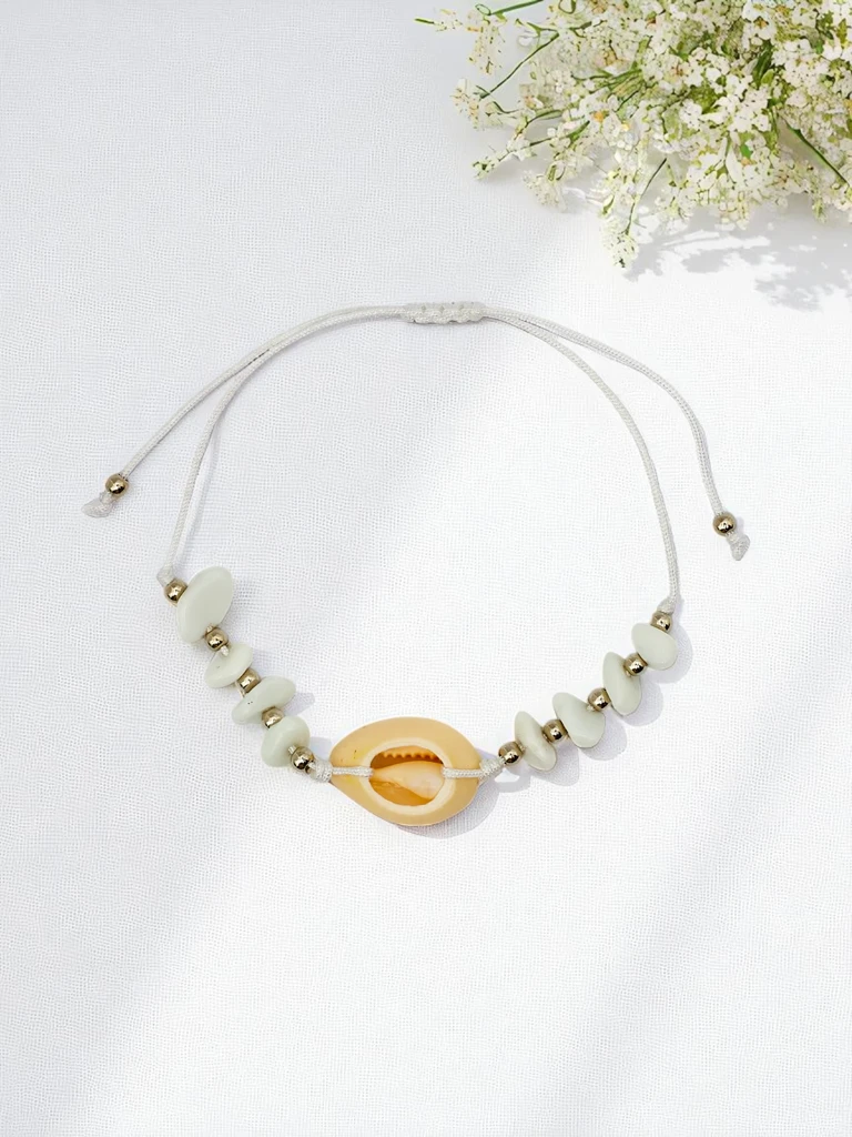- Bracelet à cordon ajustable décoré d’un coquillage naturel. Délicat et plein de charme marin, parfait pour les journées d’été. Il apporte une ambiance plage à toutes vos tenues, ajoutant une touche subtile et estivale. Idéal pour les journées ensoleillées